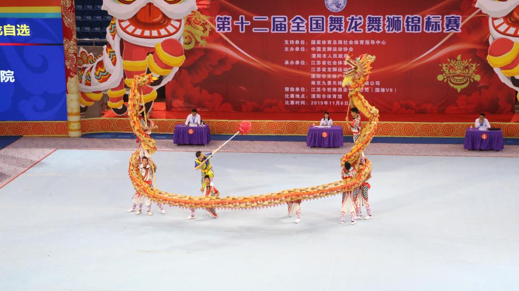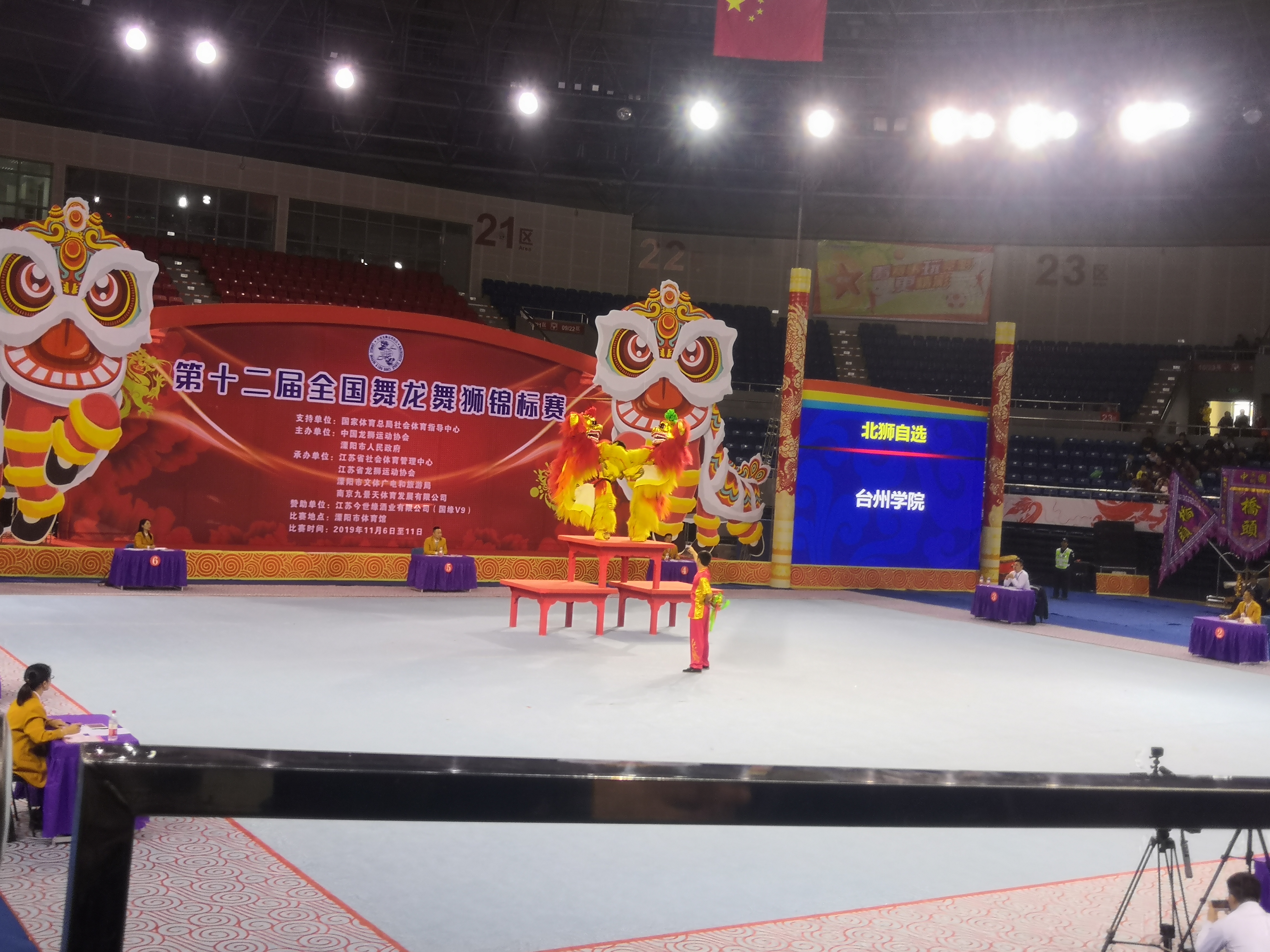 舞龙自选套路项目是舞龙单项比赛中分量最重,也是最能体现队伍水平的竞技项目,观众最为期待,竞争也最为激烈。比赛中,我校舞龙队面对众多强队,不畏强手、奋勇拼搏、团结协作、密切配合,以丰富的表情、人龙合一的动作神态,展示龙的精气神韵,最终赢得评委和观众的认可,获得热烈而持久的掌声。我校舞狮队在众多专业强队集聚的情况下,他们以高超的技巧、稳定的状态和出色的表演力,在北狮自选项目中突出重围。