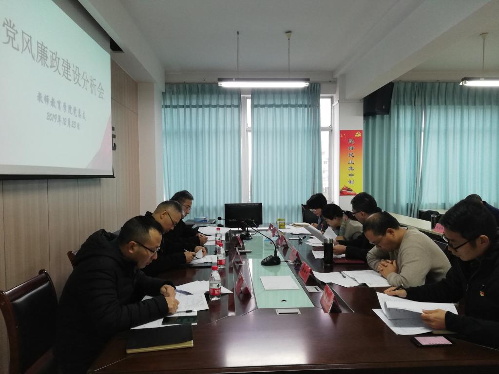 12月23日上午,教育学院召开2019年下半年党风廉政建设情况分析会。校党委委员、组织部长杨健国、工会副主席江岳军到会指导,校办王华老师、学院领导班子成员、系室主任等参加分析会。
