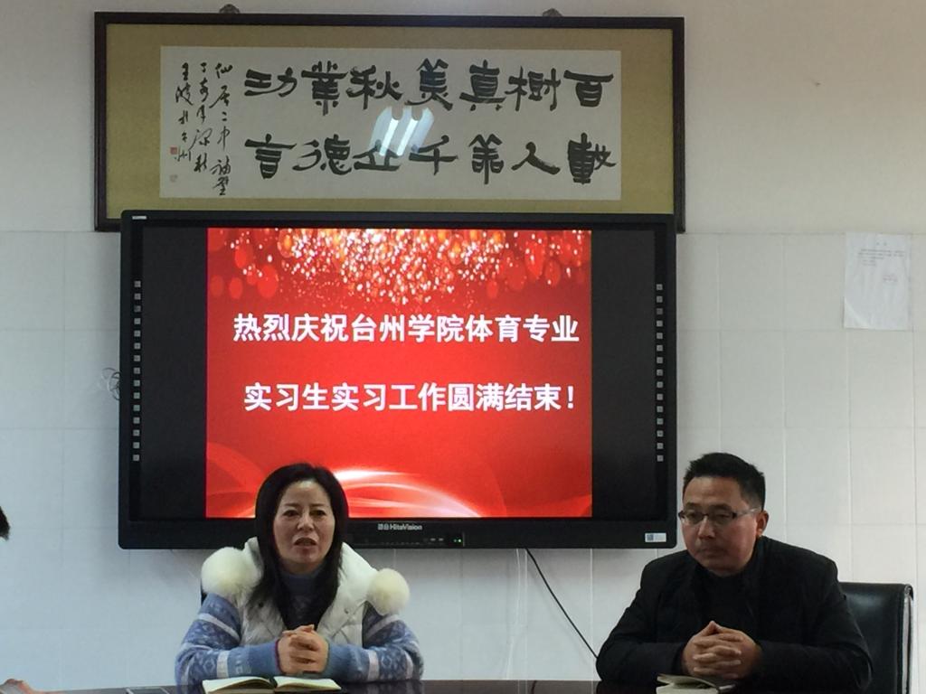 近日,仙居二中举行我校体育教育专业实习生欢送会,仙居二中冯旭雅校长、教师教育学院(体育学院)沈建敏老师、我校实习生出席欢送会。