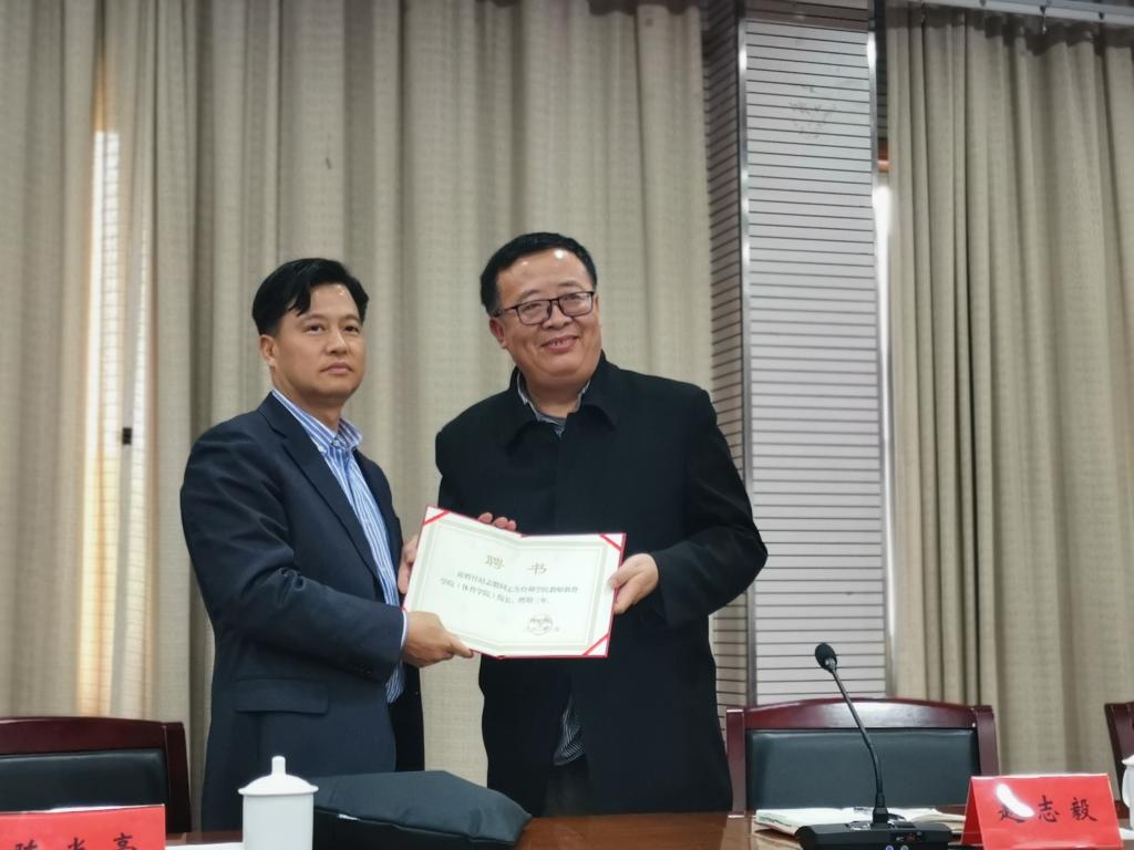 潘瑛宣读了任命文件:周瑶任创业学院院长,赵志毅任教育学院(体育学院)院长,聘期3年。会上,潘瑛简要介绍了赵志毅的基本情况,陈光亭校长向赵志毅颁发聘任证书。