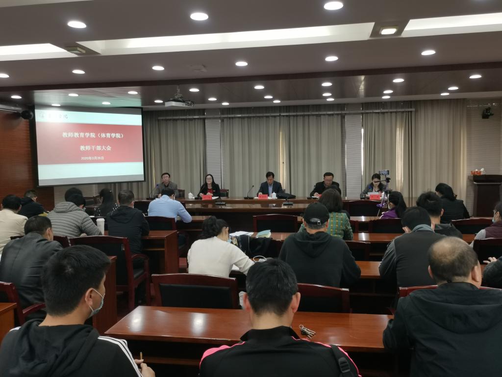 3月26日下午,根据学校党委安排,我院召开教师干部会议,宣布关于教师教育学院院长的任职决定。校长陈光亭、组织部常务副部长潘瑛及我院新任领导、院领导班子成员出席会议,系(部、室)主任、教师代表参加了会议。会议由学院党总支书记赵校民主持,并进行了视频直播。