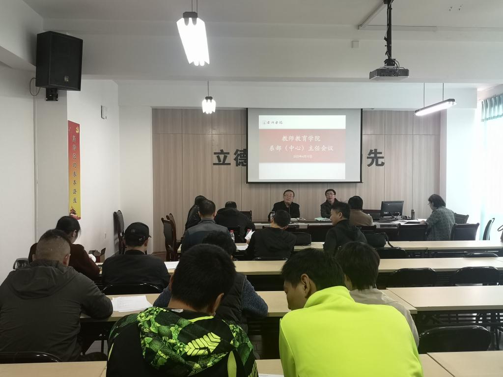 4月10日下午,教师教育学院在学院党员之家会议室召开系部(中心)主任会议。学院院长赵志毅、党总支书记赵校民、学院党政领导和各系部(中心)主任参加会议。