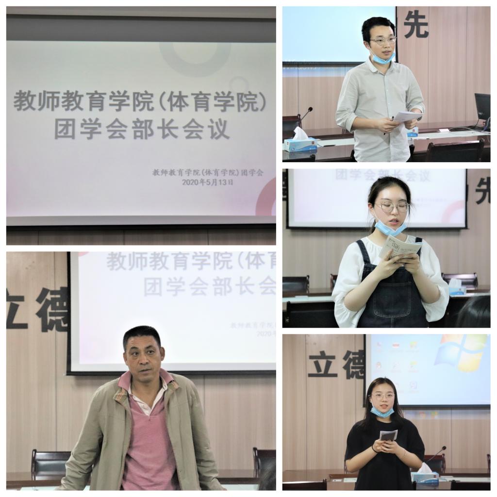 为总结疫情期间学生工作的开展情况,展望新学期的工作规划,5月13日晚,教师教育学院(体育学院)于5号楼3楼会议室召开团学会干部会议。学院辅导员阮溶明、朱萌及团学会各部门干部出席本次会议。