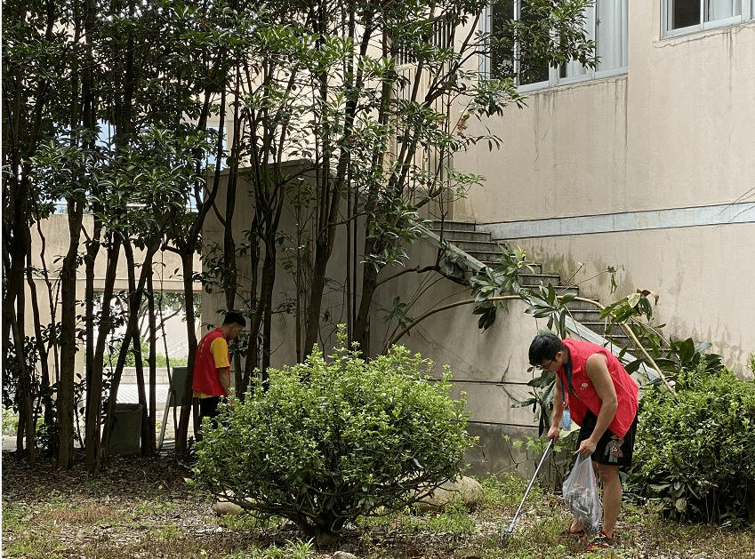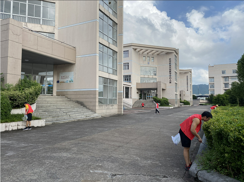 志愿服务期间,学院志愿者们带着垃圾钳、垃圾袋、扫帚等工具,在酷暑天气仔细检查校园网格区域内的每个角落,对临海校区1-8号教学楼、图书馆、校标风景区、高架连廊等责任区块进行了全面的检查和清理。学院教师学生一起工作,对于楼梯、花坛、道路、草地等角落的垃圾进行认真清理,同时对包括教学楼架空层的成堆杂物进行了处理。对于公共自行车、电动车停放等问题,志愿者也进行了细致耐心的整理,并对过往的老师学生进行了相关文明宣传。