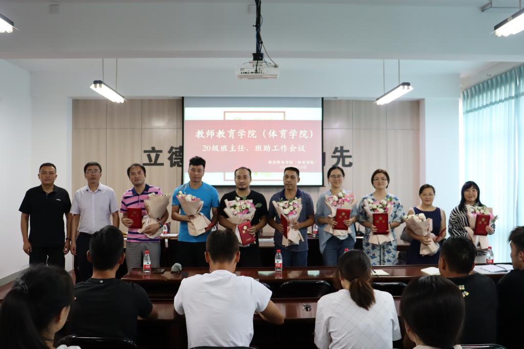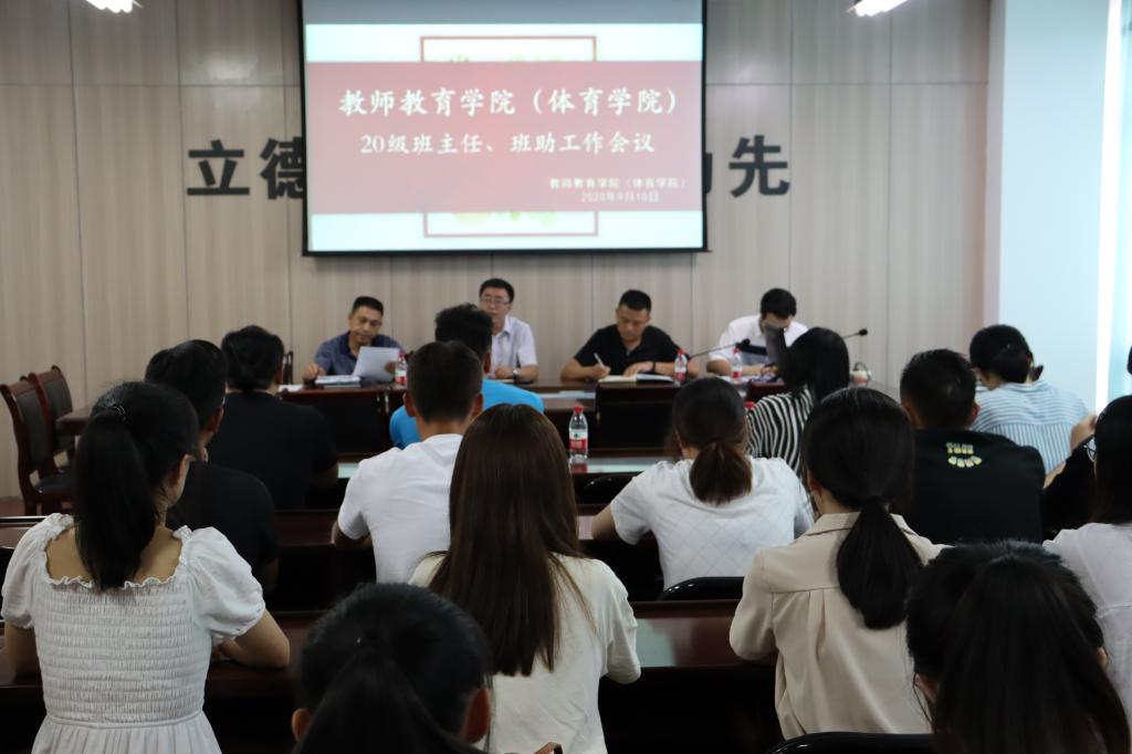 为更好做好学院迎新工作,进一步加强班风、学风建设, 9月10日下午,教师教育学院(体育学院)于五号楼三楼会议室召开20级班主任、班助工作会议暨班主任聘任仪式。学院党总支书记赵校民出席,党总支副书记吴磊主持会议,辅导员及20级班主任、班主任助理参加会议。