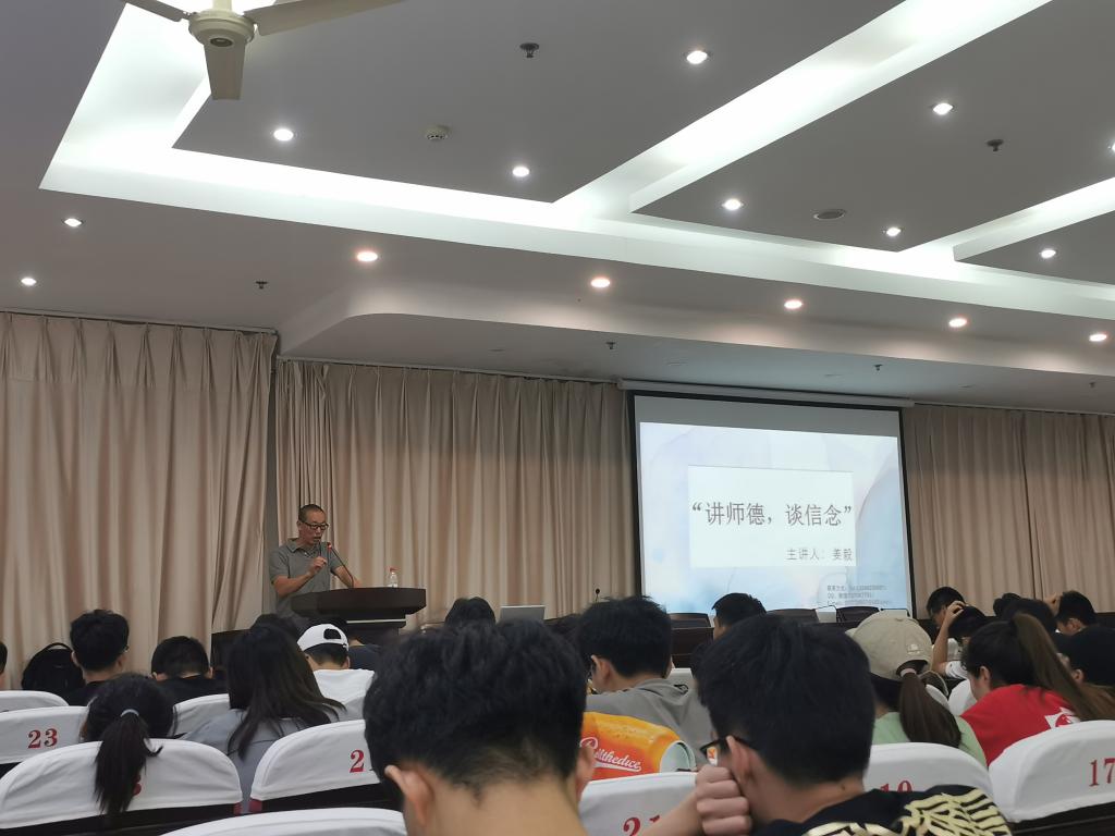 仙居二中姜毅老师在讲座中指出,师德是一个老师做基础也是最重要的品德,他希望同学们做一个有情怀的教育工作者,让爱在不经意间蔓延。实习期间要为人师表,做到教学生知识的同时,关爱学生,相信大家在实习期间会学会如何做一个好老师。