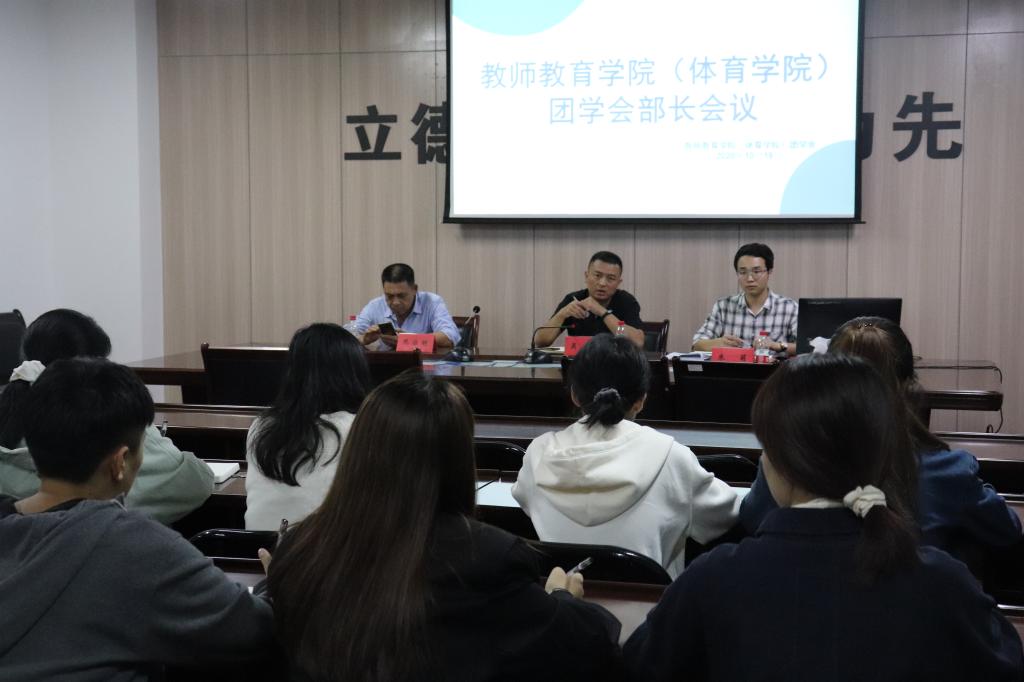 10月19日晚,教师教育学院(体育学院)举办“青马工程”暨团学会学生干部会议。学院党总支副书记吴磊,学工办主任阮溶明、辅导员朱萌出席,学院第三届团学会学生干部参加会议。