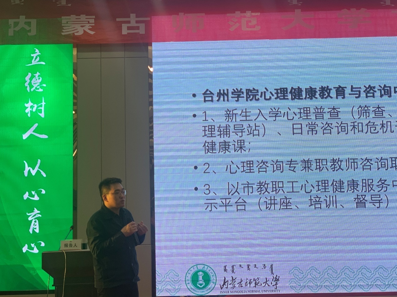 应内蒙古师范大学邀请,教师教育学院唐继亮老师于11月6-8日在呼和浩特市参加“内蒙古师范大学首届天骄心育论坛”,作学术报告并受聘为该校心理健康教育中心外聘专家。内蒙古师范大学党委副书记高云峰及相关部门、学院负责人,北京师范大学、中央财经大学等多所高校心理健康专家,以及师生代表共200余人参加论坛。