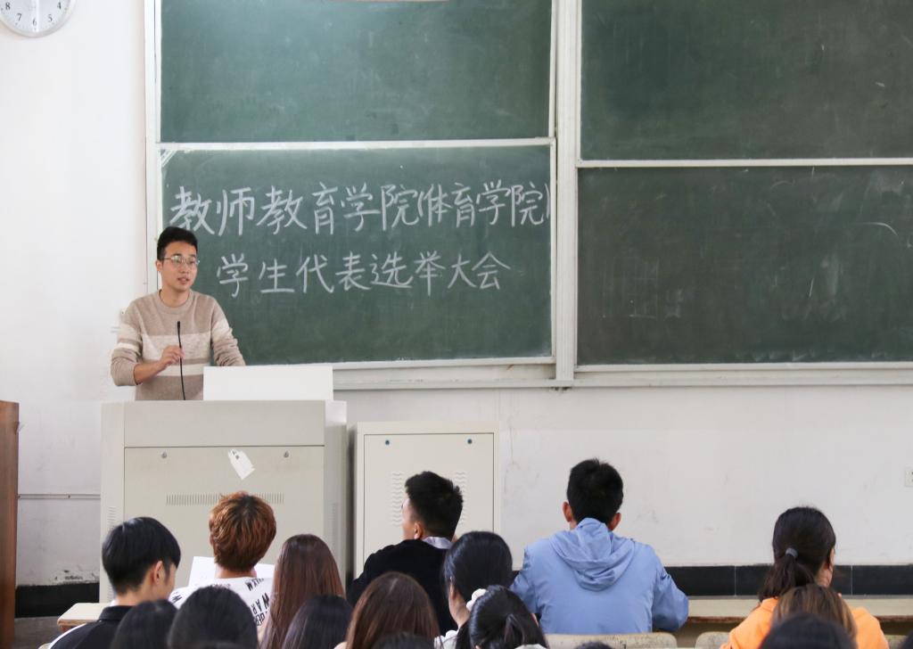 为筹备台州学院第五次学生代表大会,推动学生会工作进程。11月14日中午,教师教育学院(体育学院)于A2阶梯教室举行教师教育学院(体育学院)学生代表选举大会。辅导员朱萌,各班代表参加本次大会。