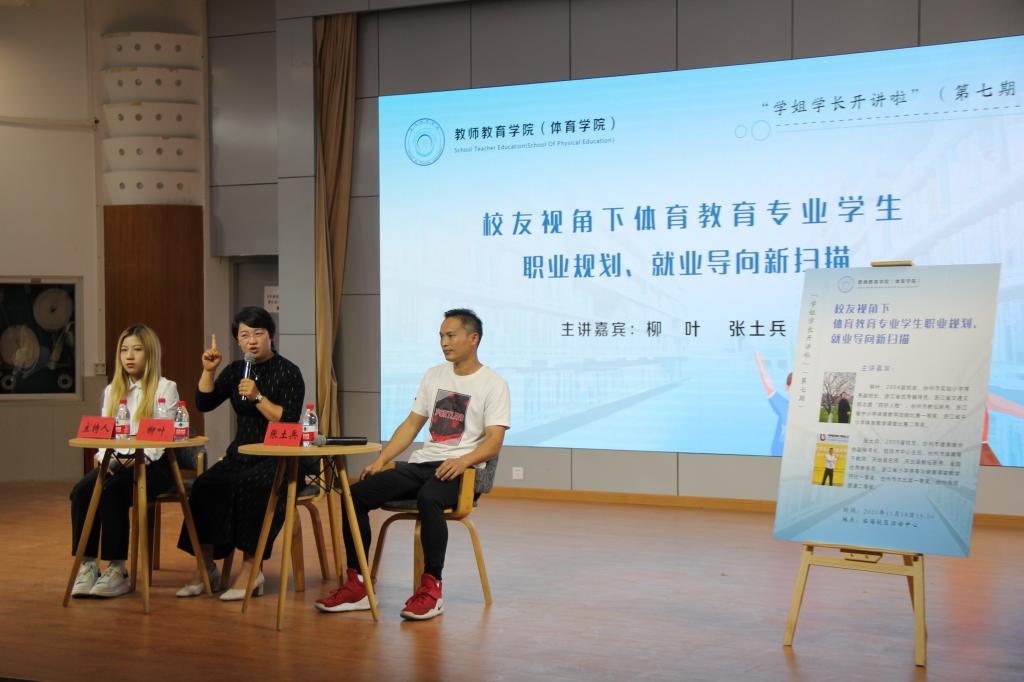 为明晰体育教育专业未来就业发展方向,引导学生明确自我职业规划,11月18日下午,教师教育学院(体育学院)于学生活动中心开展第七期“学姐学长开讲啦”活动。优秀校友柳叶与张土兵应邀担任本期主讲嘉宾,学院副院长林辉杰、党总支委员鲁建波及部分19级体育教育专业学生参与本次活动。