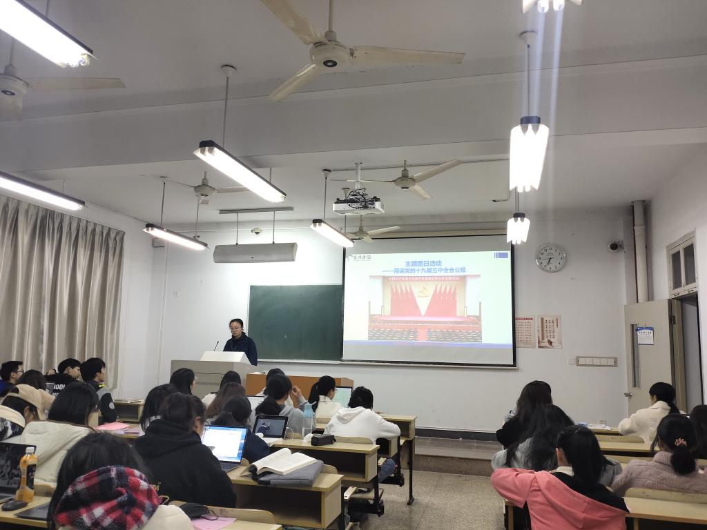各班团支书通过组织班会的方式,了解当前国际国内形势,让各班同学学习十九届五中全会公报,一起讨论“办好自己的事”、“新发展格局”、“有效市场和有为政府”等会议热词。在外实习的班级,也通过网络发起了学习活动,班级所有同学纷纷热议“2035远景目标”、“十四五规划”等发展新命题。