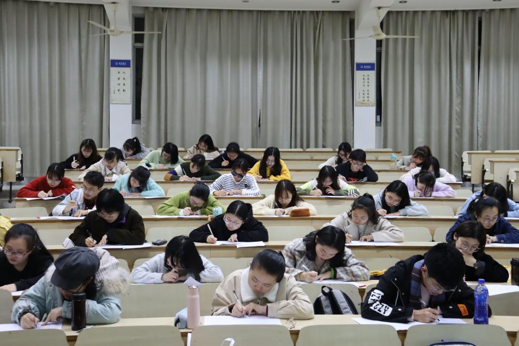 在宣读完注意事项后,比赛正式开始。本次作文大赛采取闭卷模式,在给定的作文题目中,既有紧扣时代主题,聚焦新时代青年对现阶段全面小康历史时刻的思考;又有贴切生活,关注大学生活中正确对待压力的方法;还有引发人们深思,探索平凡之辈如何保持热爱的人生哲学。比赛过程中,各选手仔细阅读题目,灵感泉涌,落笔成文,安静的考场只余笔尖触纸生花的声音。