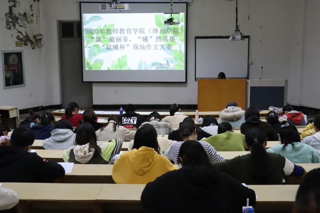 为增强学生文学素养,给热爱文字的同学们提供一个展现才华的舞台,近日教师教育学院(体育学院)于A4阶梯教室开展“晨”邀丽章,“曦”然落墨“晨曦杯”现场作文大赛。面向全校大一、大二及大三全体学生。