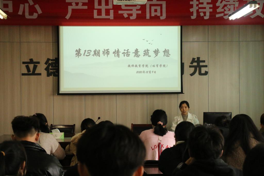 为进一步完善学院的综合考评细则、提升学生的自我发展能力,促进学生主动参与到学院的管理工作中,12月9日中午,教师教育学院(体育学院)于五号楼三楼会议室举办第13期师情话意筑梦想活动。辅导员老师及18.19.20级班长出席本次会议。