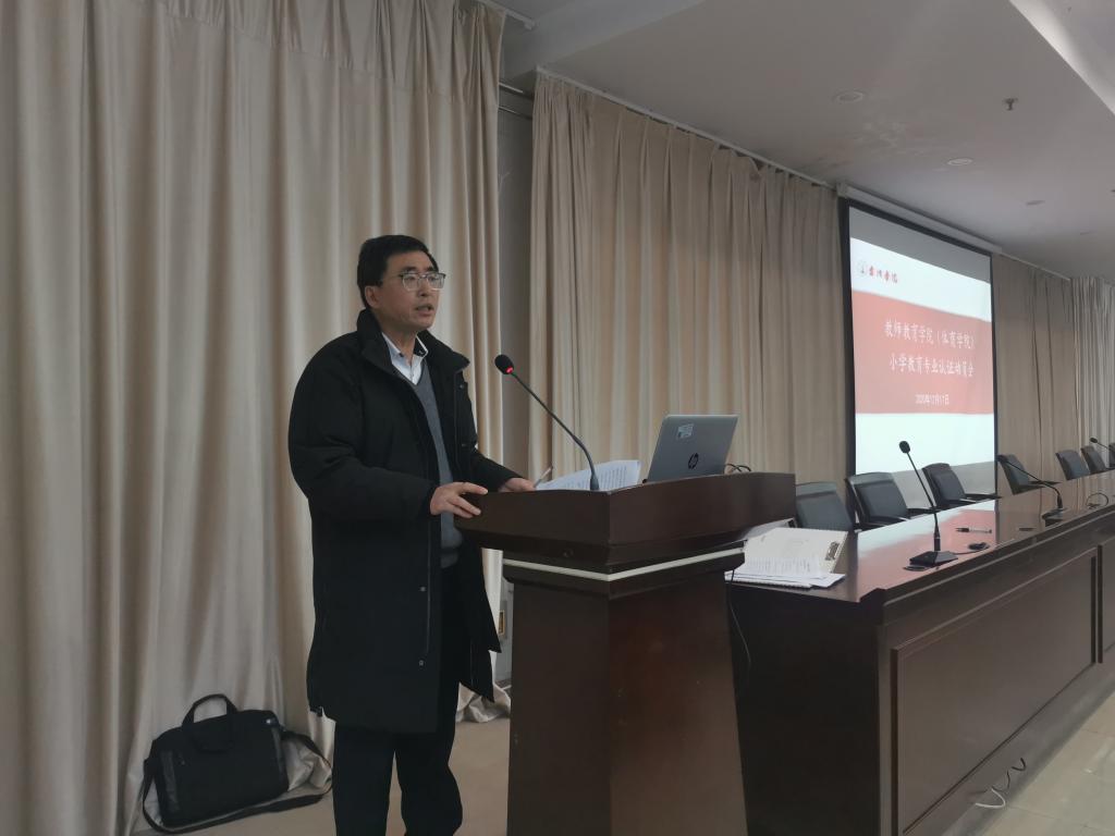 在小学教育专业认证工作动员会上,赵校民强调要充分认识到专业认证工作的重要意义,这是学院的一项重点工作,是专业建设的大事,是每一位专业教师份内之事。要求按照《小学教育专业认证方案》,做到“谋划到位、宣传到位、精力到位、行动到位”,要有集体意识和大局意识,并预祝小学教育专业认证取得优异的成绩。