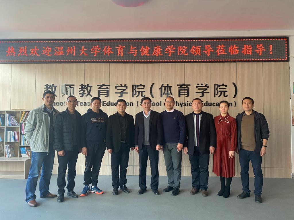 3月12号下午,温州大学体育与健康学院赵海波副院长等领导,来校进行考察交流。教师教育学院杜才平院长、赵校民书记、林辉杰副院长及相关老师,参加了本次交流会。