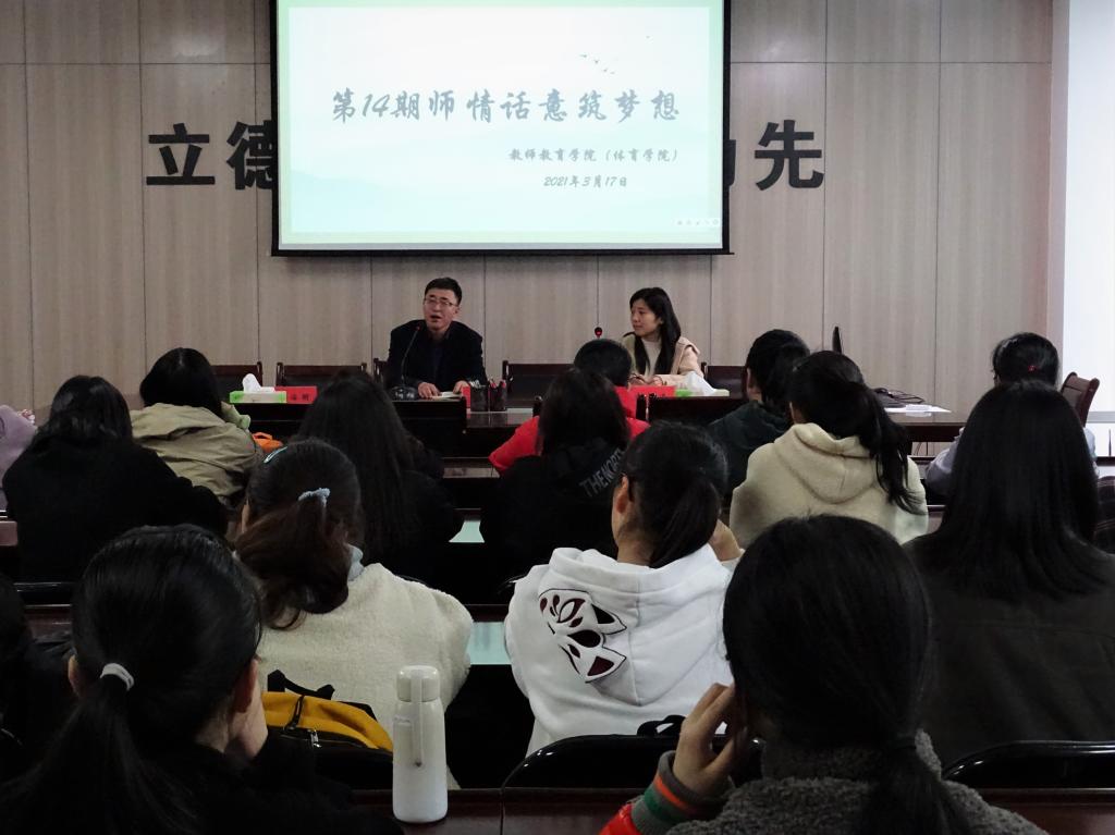 为帮助转专业学生尽快融入新集体,促进师生沟通,3月17日中午,教师教育学院(体育学院)于五号楼三楼会议室举办师情话意筑梦想座谈会,学院党总支书记赵校民,辅导员阮溶明、赵远远及20级转专业同学出席本次活动。