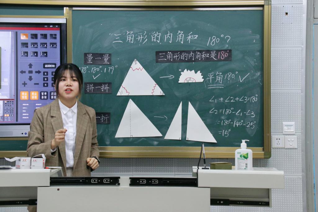 156位学子按语文、数学方向,分10组进行模课。在限定的10分钟模课时间内,参赛者需完成比赛规定的全部模课要求。模课内容选自小学四年级下册教材,语文组为《乡下人家》,数学组为《三角形的内角和》。