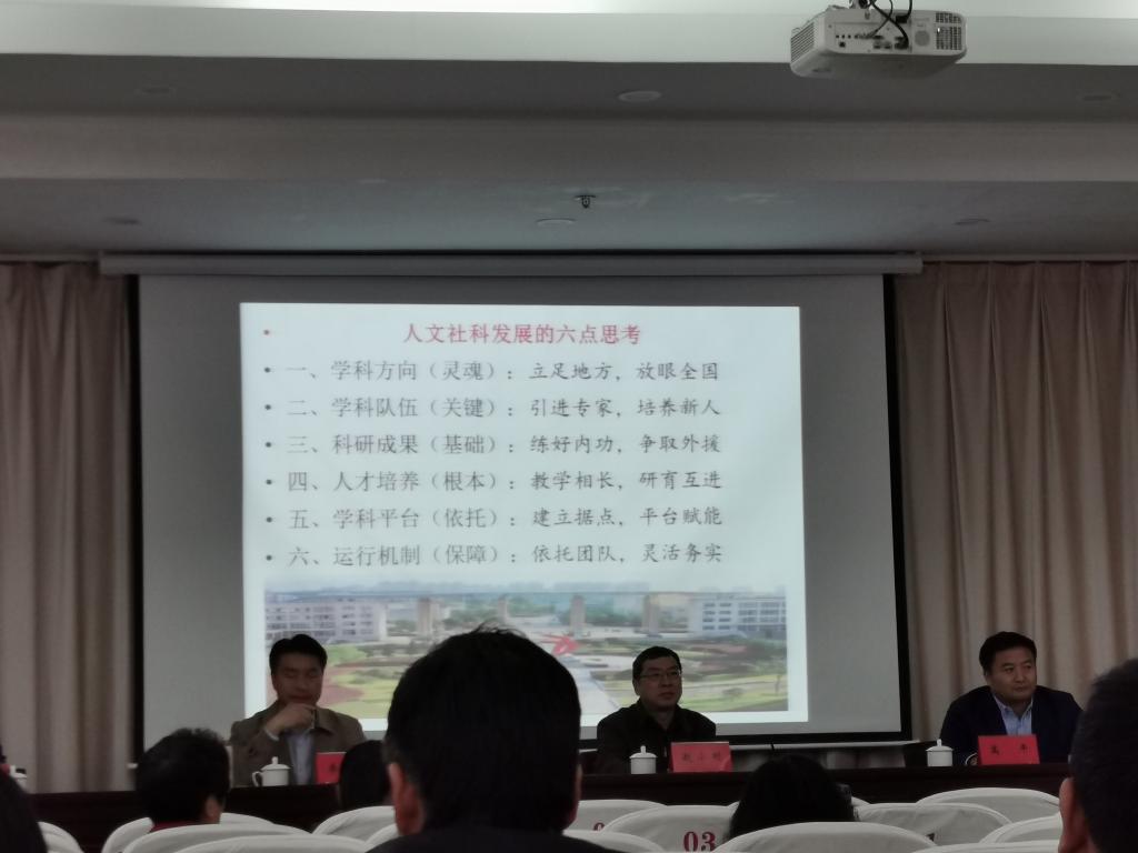 为了有力推进我校人文社科振兴计划,在社科处的精心策划下,于教师教育学院(体育学院)召开了人文社科振兴推进专场会。副校长赵小明、社科处副处长高平、人文学院院长李建军、教育学院院长杜才平等领导和教育学院全体教职工,参加了本次会议。