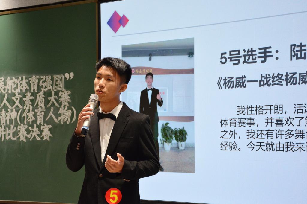 5月20日晚,教师教育学院(体育学院)于A6教室举办了“扬帆展舵,体育强国”第二届人文素质大赛体育精神(体育人物)演讲比赛决赛。专任教师陈永军、辅导员朱萌担任评委,参赛选手与学生观众代表参加此次活动。