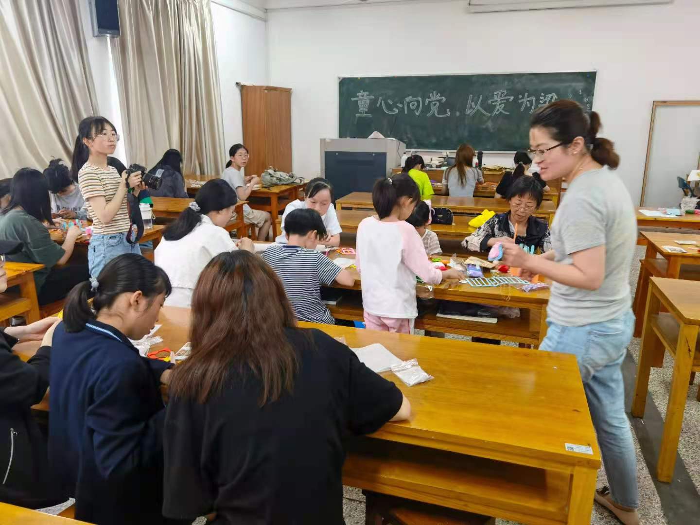 为提升党史学习教育活动效果,服务师生办实事,增进教职工和孩子之间的情感交流,丰富教职工业余活动,5月29日上午,教师教育学院(体育学院)党员师生、团学会携手校妇联、学院分工会于临海校区八号教学楼开展以“童心向党,以爱为梁”为主题的亲子手工制作活动。专任教师张冉担任技术指导,创艺手工协会成员及师生党员参加本次活动。