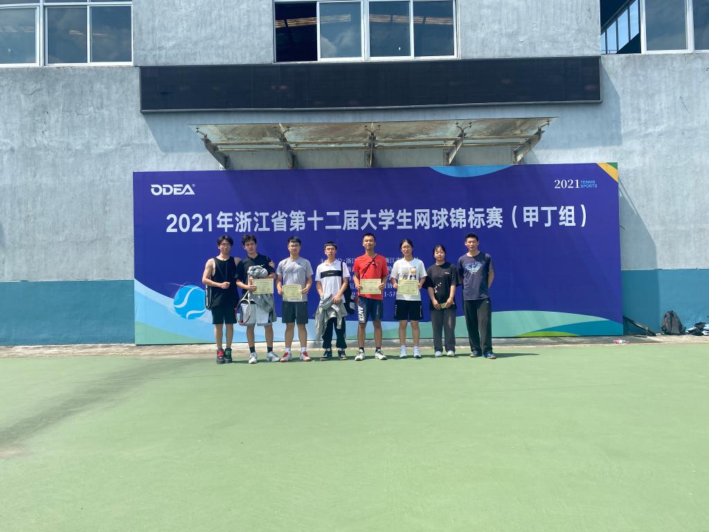我校公体网球队在领队戴晓捷和两位教练员的带领下,于5月21日—27日参加由台州万祥网球学校承办的2021年浙江省第十二届大学生网球锦标赛(甲丁组)比赛。
