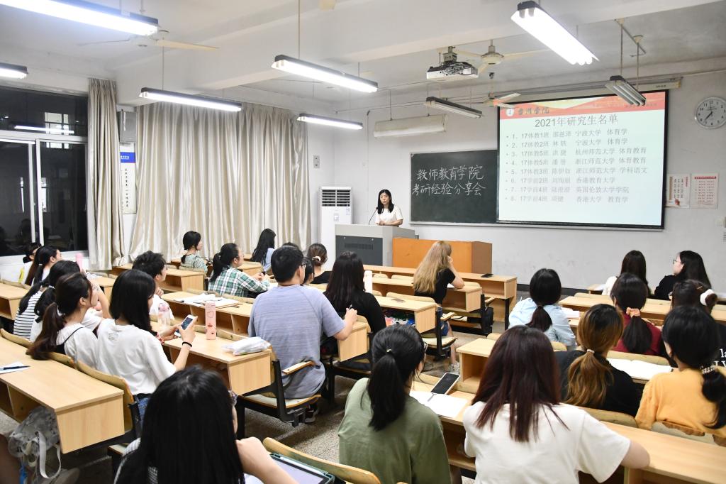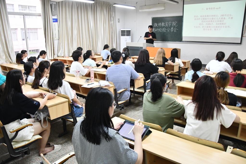 为传递考研成功经验,引导学生合理规划,6月15日晚,教师教育学院举办了第十五期师情话意筑梦想活动,此次活动的主题是“教师教育学院考研分享会暨2022届毕业生考研动员大会”。本次活动由辅导员赵远远主持,三位考研成功的毕业生作为特邀嘉宾出席会议。