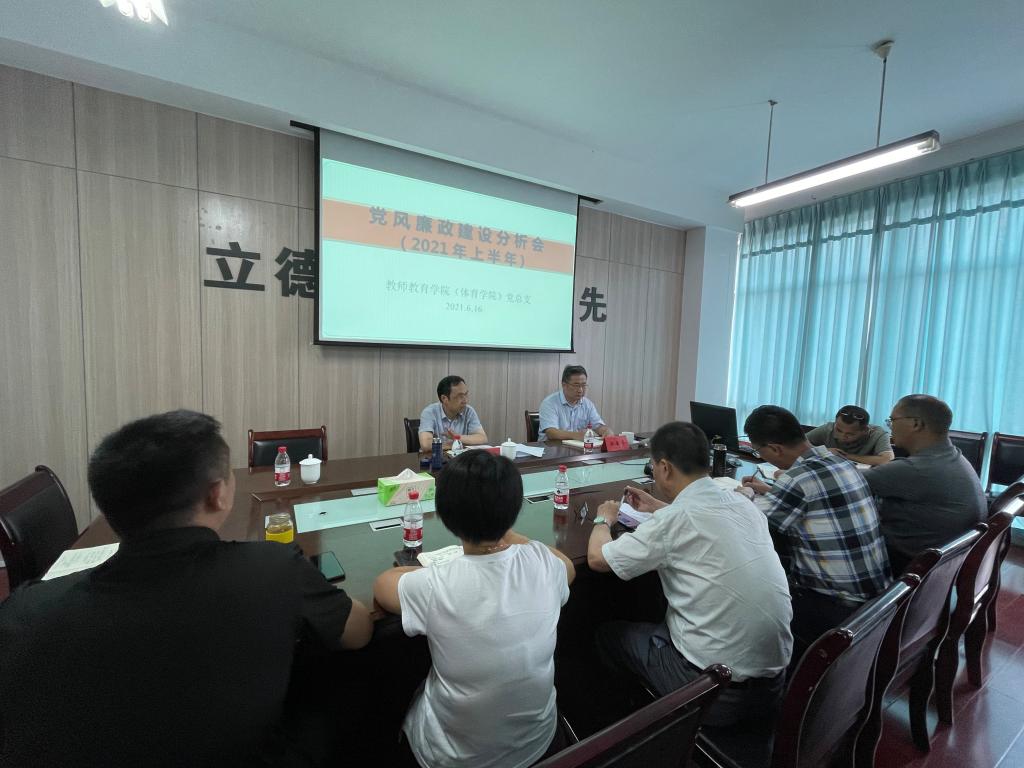 6月16日上午,教育学院召开2021年上半年党风廉政建设情况分析会。校党委委员、副校长胡韶光、工会副主席江岳军到会指导,学院领导班子成员等参加分析会。
