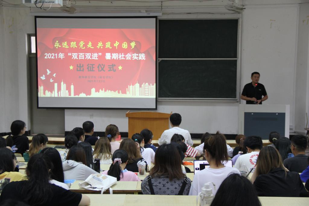 7月2日上午,教师教育学院(体育学院)于A5阶梯教室举行了2021年“双百双进”暑期社会实践出征仪式。党委副书记吴磊,辅导员阮溶明、朱萌出席,各实践队成员参与仪式。