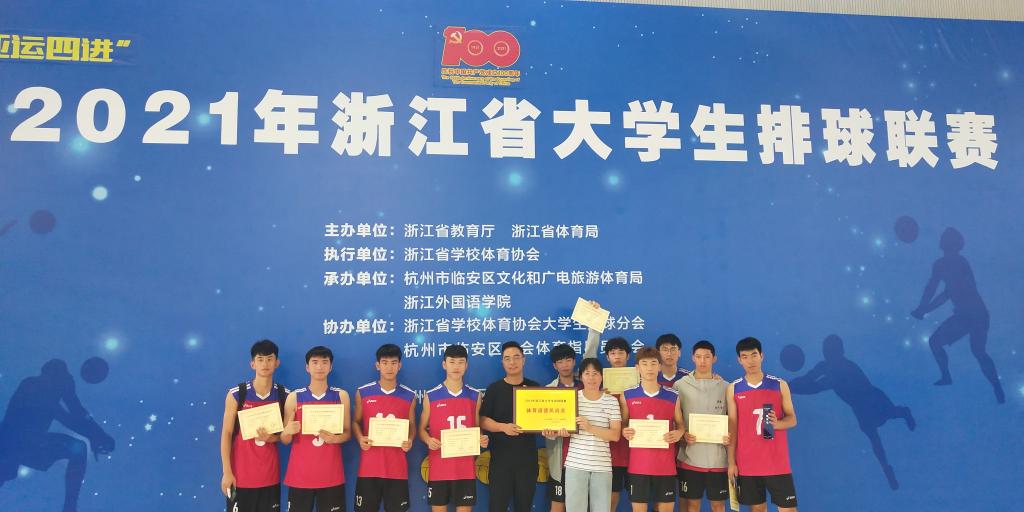 7月5日,浙江省大学生排球联赛丙组比赛在杭州临安顺利收官。经过3天的激烈比赛,我校排球队获得第五名和体育道德风尚奖。