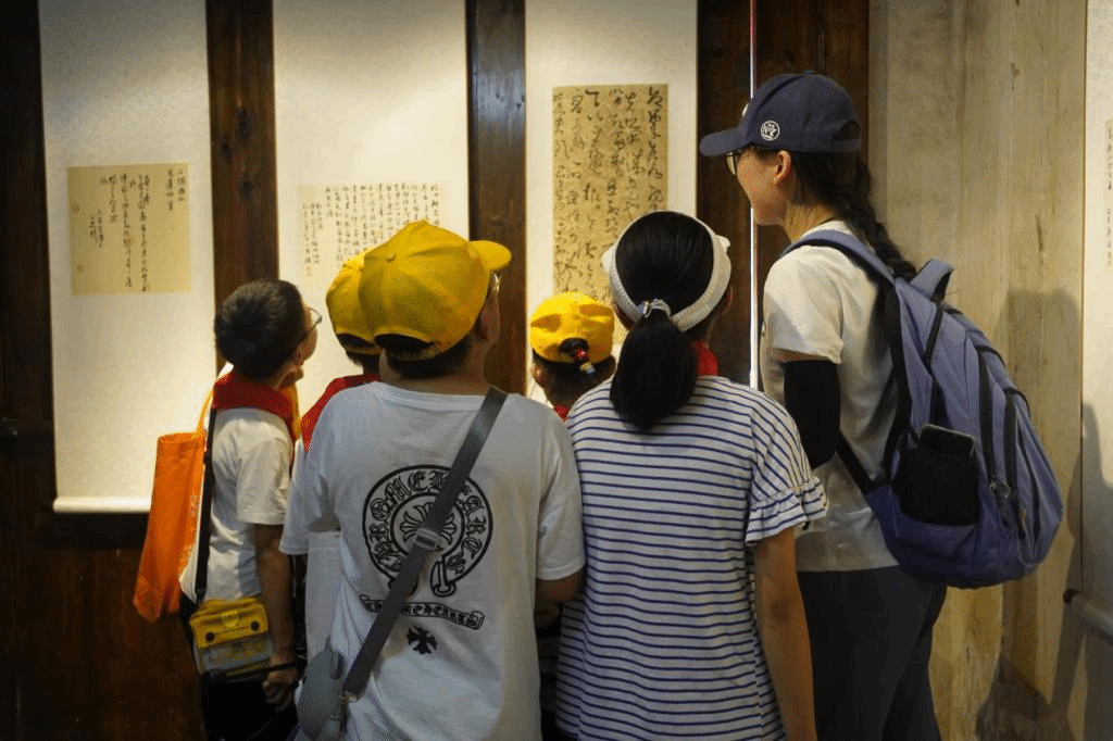 戴家祠堂里,同学们在老师的带领下了解了戴氏家族的历史,学习了戴氏的族训、家规。穿过温岭街的路途中,走在古道上,我们齐声朗读悬挂的旗面上的诗词;站在戴豪故居前,我们细听古人伟迹;围在古井边,我们了解了古代水井设计和打水技术。