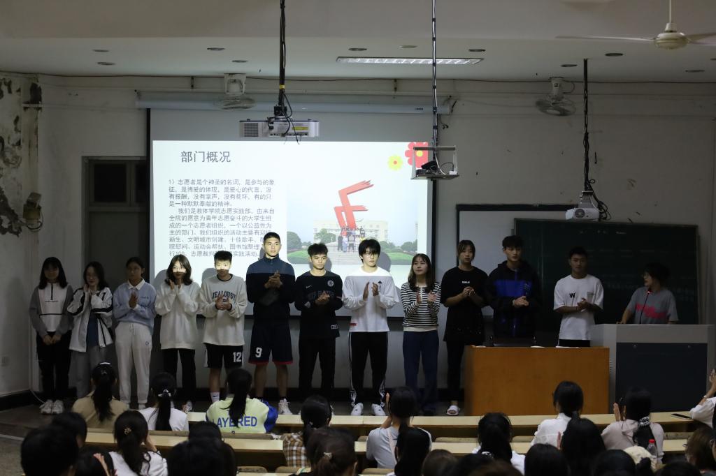 为鼓励学生积极参与志愿者实践活动,为社会献出自己的一份爱心,10月12日晚,教师教育学院(体育学院)在A4教室举行2021学年志愿者动员大会。本次会议由学生干部杨紫怡主持,辅导员朱萌和团学会相关学生干部,大一新生参加本次会议。