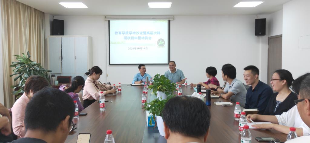 10月14日下午,教师教育学院召开了首次学术沙龙暨高层次科研项目申报动员会。学院院长杜才平作动员讲话,科研骨干王声平博士、蒋茵教授和粟高燕教授作经验分享,吴银银副院长与部分教师参加会议,林辉杰副院长主持会议。