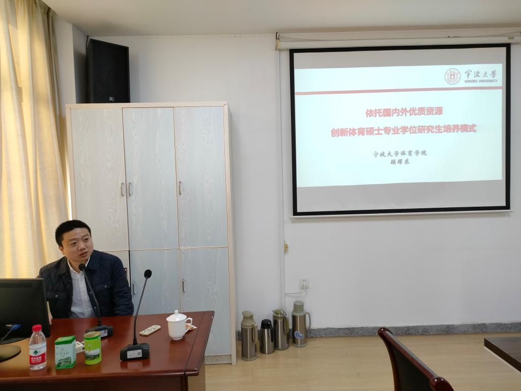 11月12日,宁波大学体育学院院长顾耀东应教师教育学院邀请,来校作体育专业硕士学位点建设专题讲座。林辉杰副院长主持讲座,党委书记赵校民、副书记吴磊以及相关教师参加。