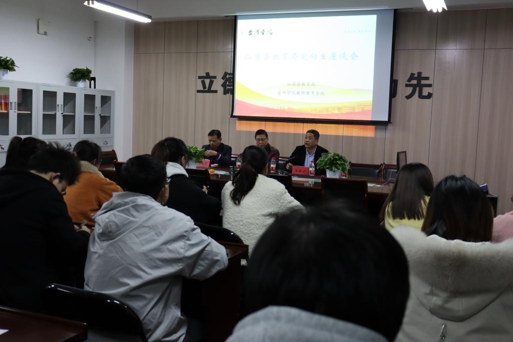 12月21日,仙居县教育局局长吕振宏一行六人赴教师教育学院与仙居定向生进行座谈交流,教师教育学院院长杜才平出席座谈会。