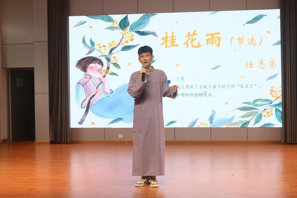 比赛伊始,参赛选手们或吟咏述怀,或喉清韵雅,呈现给观众一场“腹有诗书气自华”的视听盛宴。慷慨激昂,抒发豪情壮志;意气风发,倾吐志在四方。向经典致敬,向时代致敬,以朗诵之声传唱不朽文化。比赛接近尾声,金妮娅老师从选材、配乐、语音、语气、仪态等各方面提出了宝贵的意见。张洁老师以“情动于衷”为主题的比赛总结也使各位选手受益匪浅。