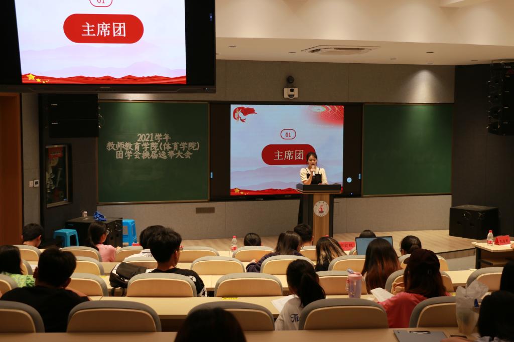 6月7日晚,教师教育学院(体育学院)于A6阶梯教室举办了第五届团学会换届选举大会,院党委委员郑殷珏,学工办主任阮溶明,辅导员徐薇、赵远远、朱萌,各候选人,主席团成员以及各班代表参加本次会议。