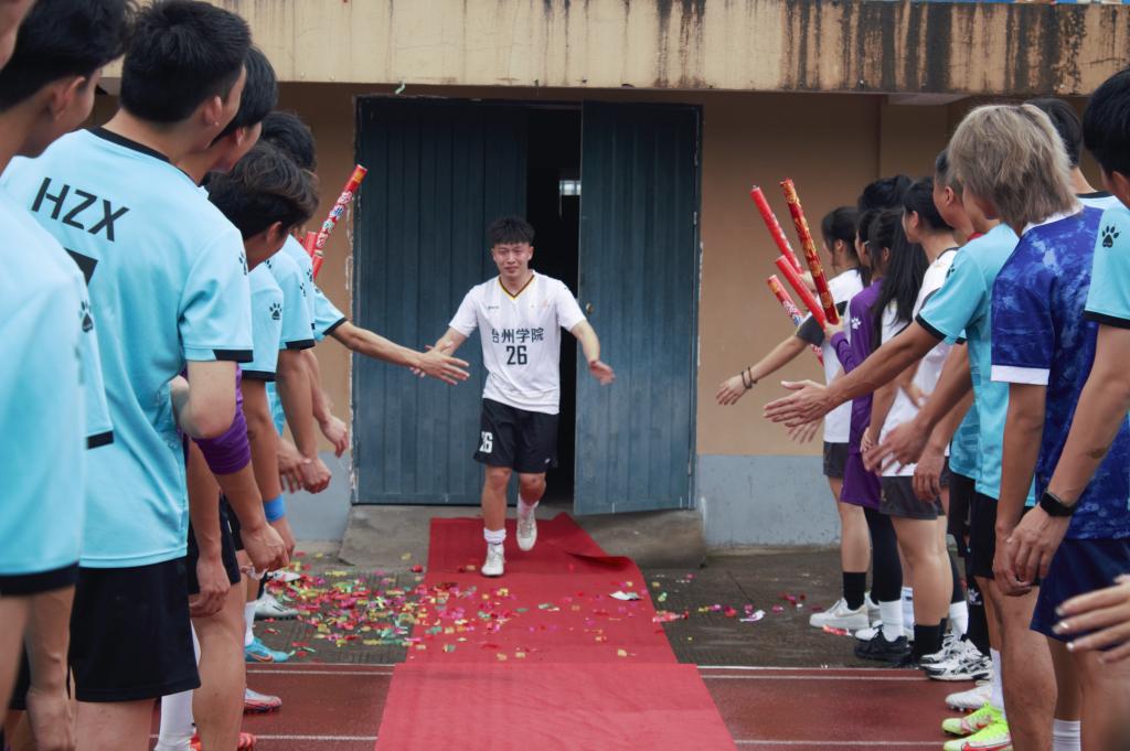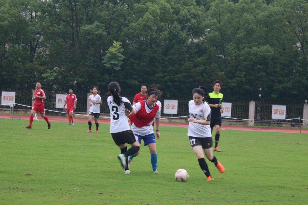 比赛之前,球队举办告别仪式,18级足球队员每个人脸上洋溢着幸福的笑容,在一声声礼炮中,跟其他队员击掌告别。随着主裁判的一声哨响,双方队员瞬间进入状态,一展飒爽英姿,一个个漂亮的铲球和射门牵动着观众的心。场下的欢呼声和尖叫声引导着比赛进入高潮。这场比赛大家并不在乎输赢,更在乎比赛本身,享受奔跑、运球的过程。