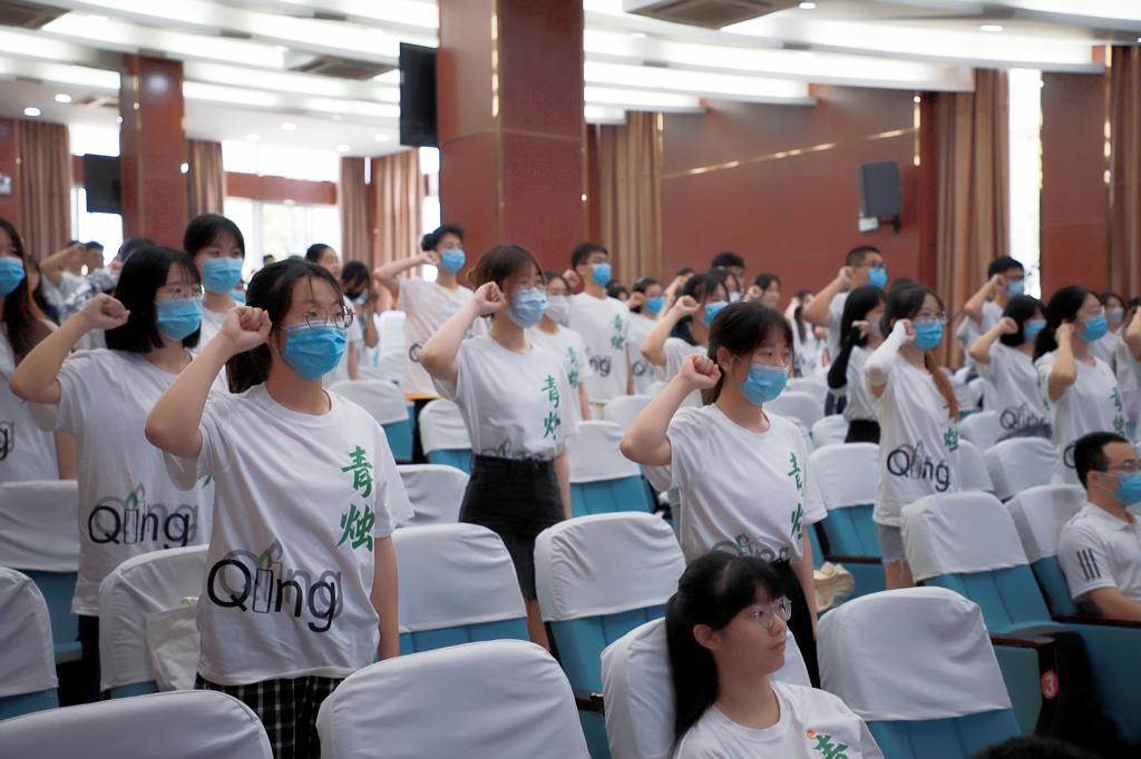 志愿者代表郭柯妤代表全体志愿者表态:把责任与爱心放在第一位,时刻保持好学的姿态和刻苦的精神,珍惜机遇、端正心态。做到在活动前期早规划,中期抓成效促落实,后期及时反思总结,共同传递师德凝结的火炬。在郭柯妤同学的带领下,全体志愿者进行了庄严宣誓。