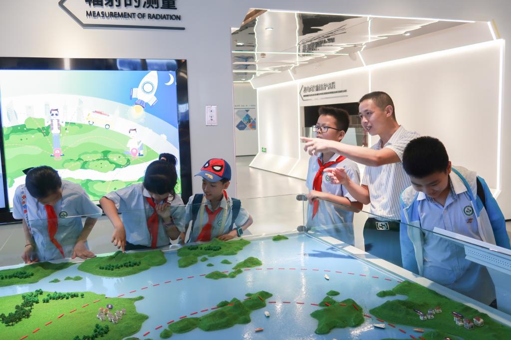 据了解,三门核电站是我国首个第三代核电自主化依托项目,是继秦山核电站之后获准在浙江省境内建设的第二座核电站,总占地面积740万平方米。在三门核电站,讲解员带学生及老师们参观了三门核电公众科普展厅,认真学习了核电知识、核电文化、核电安全管理等方面的内容,还深入了解了核电发电原理及其清洁、高效、安全的特点。在参观过程中,“育禾扬帆”实践队的小老师们还融入价值观层面的教育,在玩的过程中学习“热爱祖国、无私奉献;自力更生、艰苦奋斗;大力协同、勇于登攀”的两弹一星精神,寓教于乐,让学生在参观过程中潜移默化地实现价值观的提升。