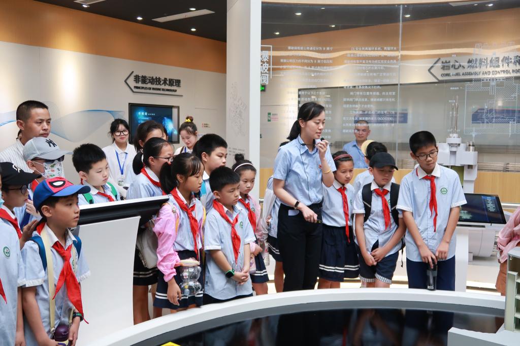 “小小核电科普员”吴靖伊说:“作为暑期课程朗诵班的一员,同时我爸爸在三门核电也工作了十年有余,从爸爸身上,我看到了三门核电人严谨的工作作风,我也认识到,核电是一种清洁能源,对环境影响极小。”通过本次研学活动,让学生在参观的同时学习核电知识,培养“两弹一星”精神,真正将学习融入生活,落实“双减”政策,做到减负增效。