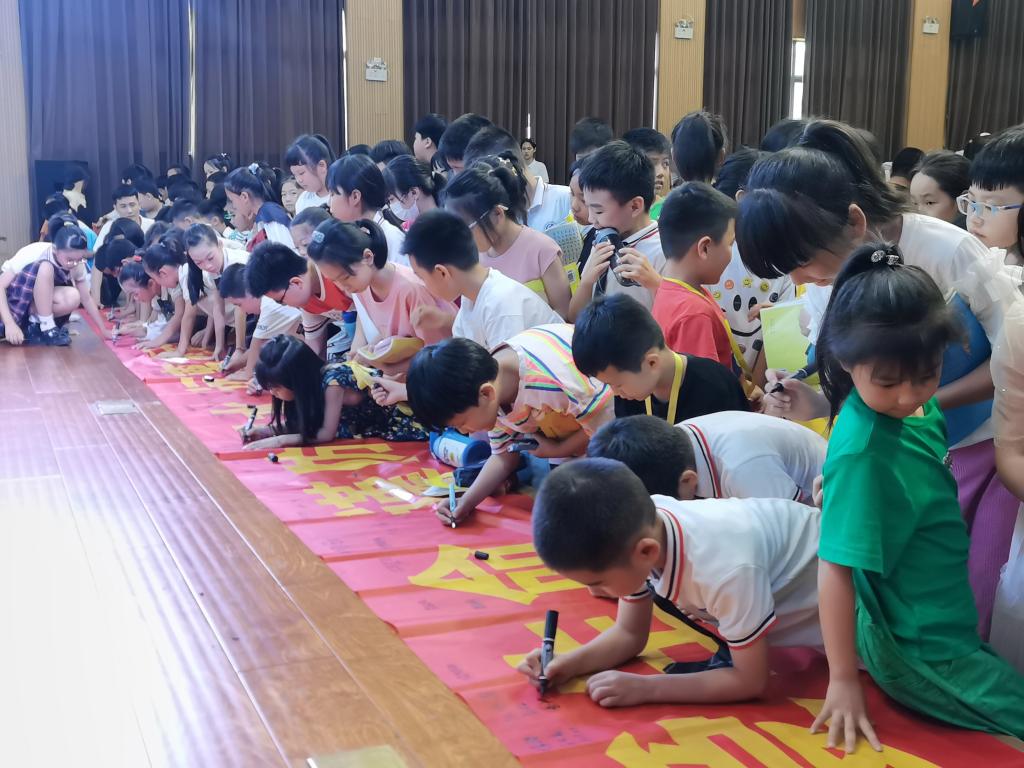 本次成果展示会分为潘圣华副校长讲话,红豹救援队宣讲,学生成果展示,溺水知识抢答,宣誓签字仪式五项。宣讲活动中,老师结合近期发生的一些溺水案例,以通俗易懂的语言向学生讲解了易发生的溺水情形、如何避免溺水、溺水急救措施等防溺水的基本知识,并现场展示了急救方法。学生们则将自己的体验通过情景剧、配音秀、合唱等多种形式表达出来,寓教于乐,将“双减”政策融入学生暑期生活的点滴。
