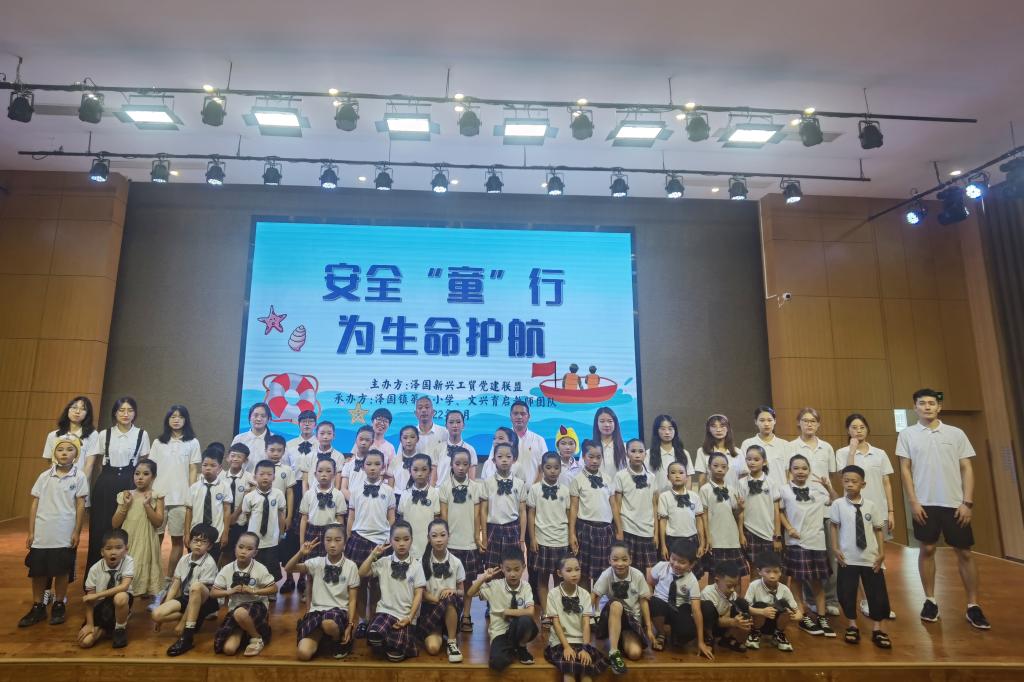 为了提高学生自防、自护、自救的能力,增强大学生团队统筹协调能力,7月14日到7月15日,台州学院教师教育学院(体育学院)“文兴泽都,育启温乡”暑期社会实践队在温岭泽国镇第三小学开展了“安全‘童’行,为生命护航”防溺水特色主题活动,包括成果展示会和“安全‘巡’航”活动。泽国三小、泽国四中、牧西村、牧屿农商银行、牧屿警务区等党支部代表以及保利特集团党委代表出席活动,泽国小学三百余名学生及老师参与成果展示会。