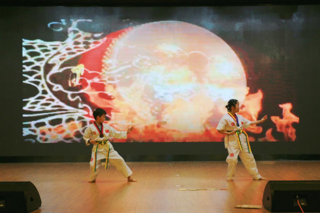 《跆拳有道》展示了小小的身躯也能迸发出巨大的力量。美术班和书法班的两位小健将用自己的功夫给大家带来了精彩绝伦的舞台表演,那干净利落的拳法和矫健的身姿,都尽情地展示了属于孩子们的青春风采!而另外两个班级——舞蹈班和声乐班的合作也是别具一格,不同凡响。穿着蓬松的公主裙展示柔美的舞姿,带着甜甜的笑脸展示嘹亮的歌声,用舞蹈与音乐让大家坚信着《明天会更好》,也让所有人期盼着光明的未来!