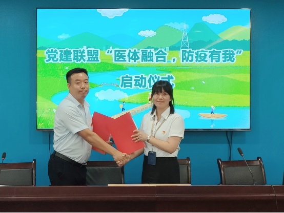 覃宇德就党建联盟共建内容指出,要不断提高基层党建工作水平,进一步巩固实践活动成果,深化创先争优活动,“医体融合”携手抗击疫情。希望双方资源共享、优势互补、不遗余力、长期合作。加强互通交流,充分发挥体育教工党员同志们的专业特色,通过传统武术、网球、篮球、田径健身等各类运动项目的技能传授,结合中医、西医、康复保健等专业知识,提升群众自身免疫力,促进身体健康,为疫情防控工作提供有力支持。