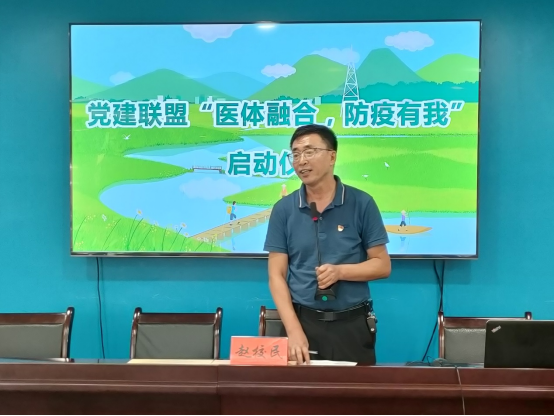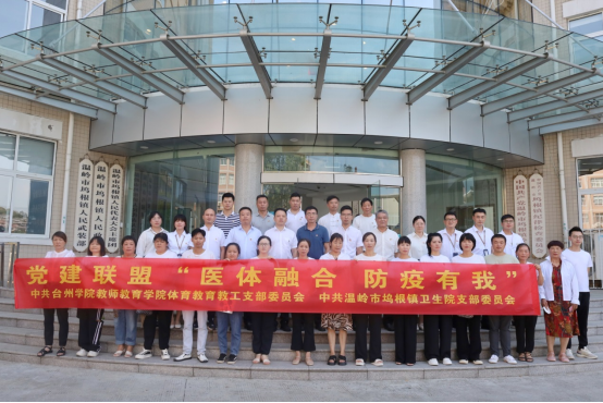 为全面贯彻习近平新时代中国特色社会主义思想建设的总要求,树立“抓党建、凝合力、保安全、防疫情”的思想,倡导“党建一家人”的理念,结合疫情防控工作,8月23号下午,教师教育学院党委书记赵校民率队赴温岭市坞根镇卫生院开展党建联盟结对共建活动启动仪式。台州学院教师教育学院体育教工党支部书记覃宇德,副书记余伟峻,组织委员张敏安,宣传委员石玉友,体育教育专业副主任樊坤,温岭市坞根镇人民政府党委副书记林海厅,副镇长蔡灵波,温岭市第一人民医院医共体党工委副书记吴忠标,温岭市坞根镇卫生院院长、党支部宣传委员柯连威,党支部副书记钟佩红等出席。