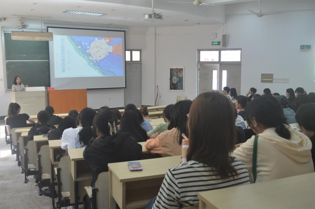 林芳老师阐述了当下幼师就职的利与弊,详细地介绍了幼师的职业优势与幼师招聘途径多样化。同时,她也分析了当下由于幼师编制数量减少而导致的幼师供应不足、幼教学生就业困难等问题,并就当下的缩编局面向同学们提供了许多可靠的应对方案。