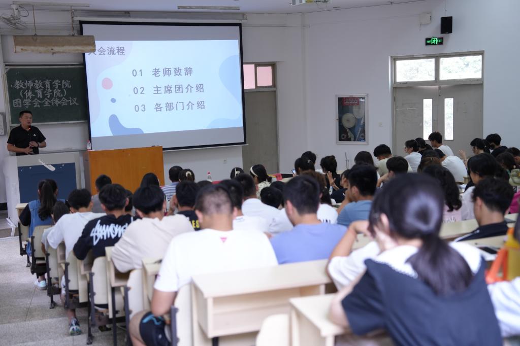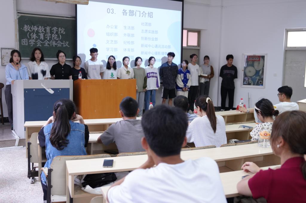 为引导学生干部明确自身职责、促进部门团结协作、打造优秀团队,9月29日中午,教师教育学院(体育学院)于阶梯教室A1召开团学会全体干部会议。学院党委副书记吴磊、学工办主任阮溶明、辅导员季树宇及团学会全体成员参加本次会议。