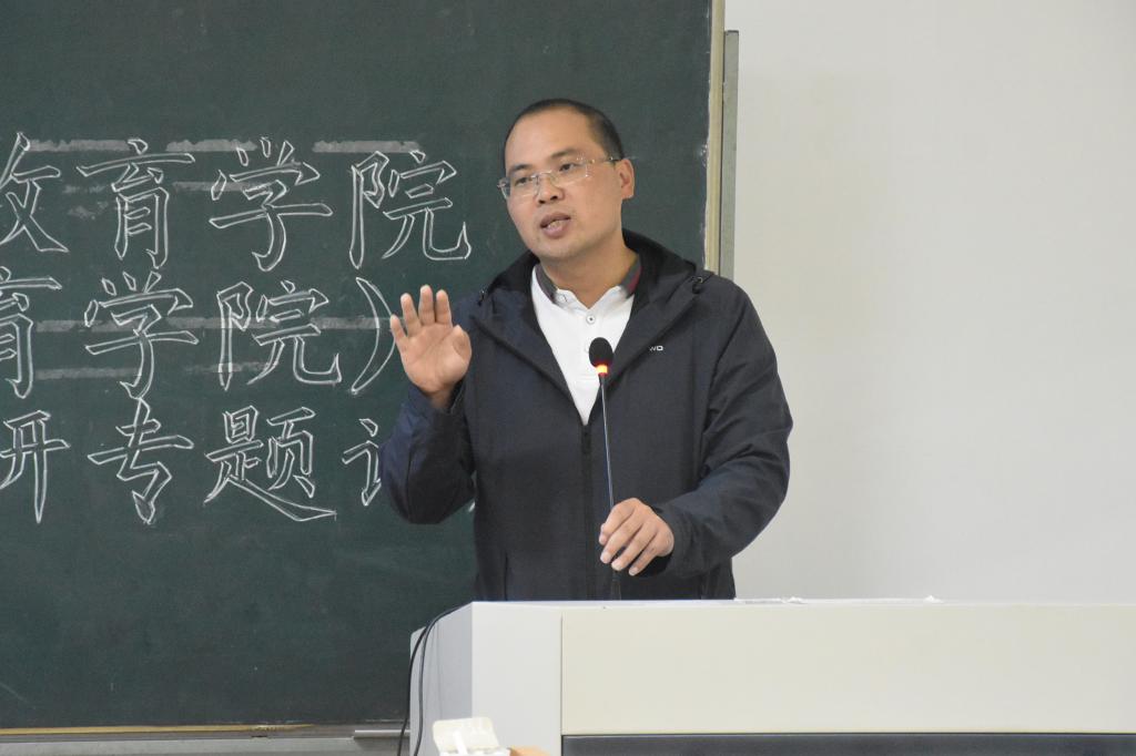 林辉杰作总结讲话,强调体育教育专业学生考研准备的必要性,并就台院近年体教专业考研情况作了细致分析。林辉杰要求体育教育专业学生们应早日明确未来规划,对于目前的考研风向标做到早准备、勤准备、精准备。