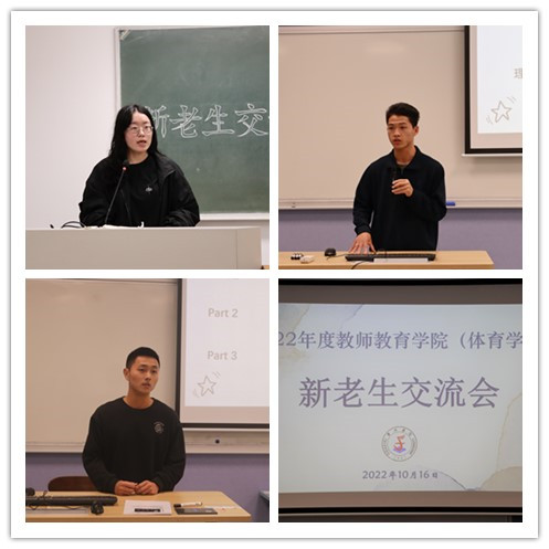 为进一步帮助大一学生适应融入大学生活,促进新老生之间的交流,10月16日晚上,教师教育学院(体育学院)分别于一、二、三、八号楼召开了新老生交流会。参加本次交流会的人员有20级学生及22级新生。